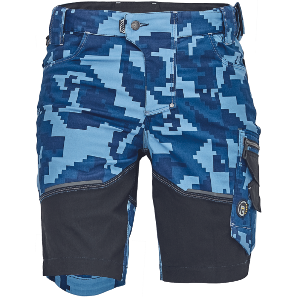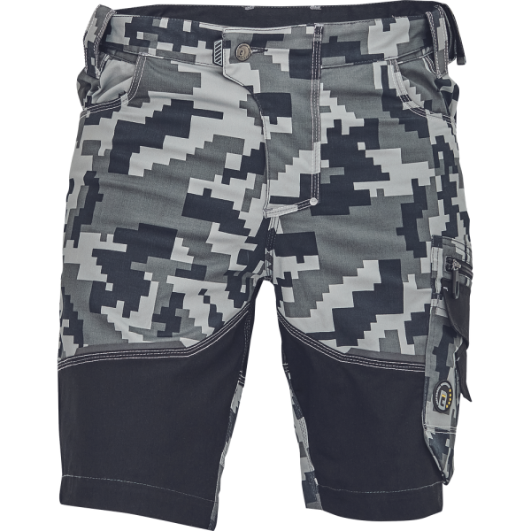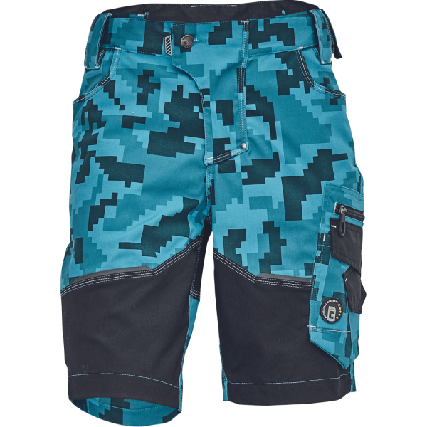 Ergonomický střih, snížený pružný pas, odolné trojité prošití nohavic a sedu. Prostorné multifunkční přední kapsy s poutky na nářadí, 2 zadní kapsy na suchý zip, stehenní kapsa na telefon s klopou a zapínáním na suchý zip, kapsa na metr a nůž,Specifikace pro Šortky NEURUM CAMOUFLAGE