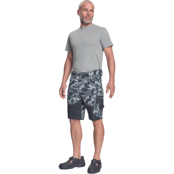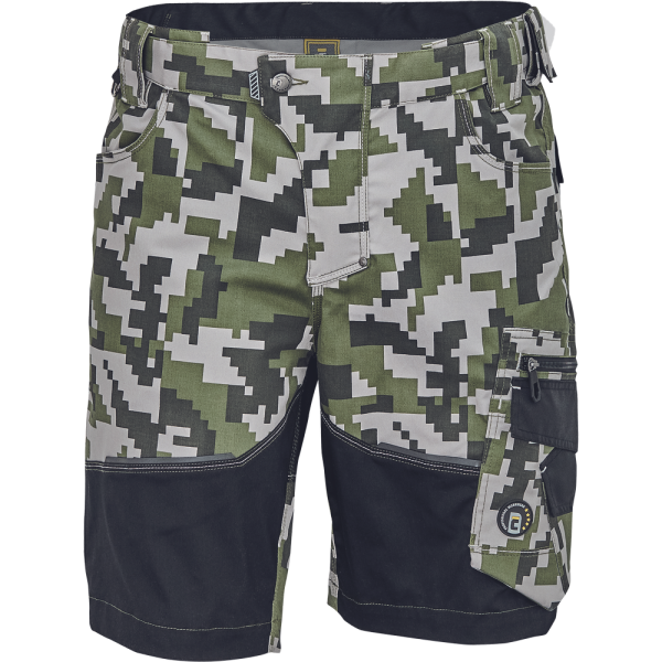 Pánské pracovní šortky s geometrickým vzorem přírodního maskování.