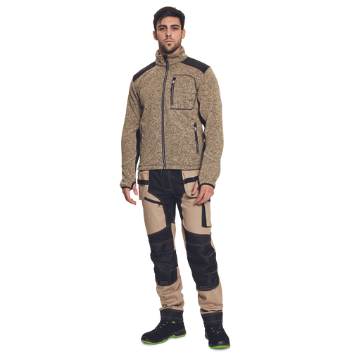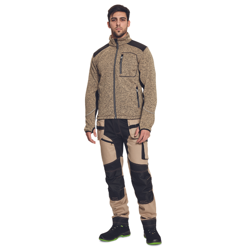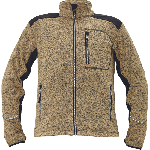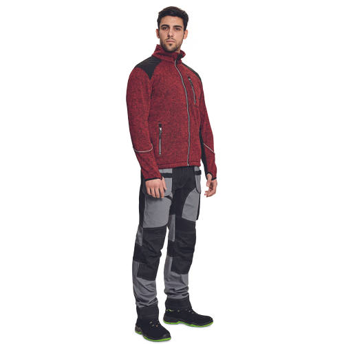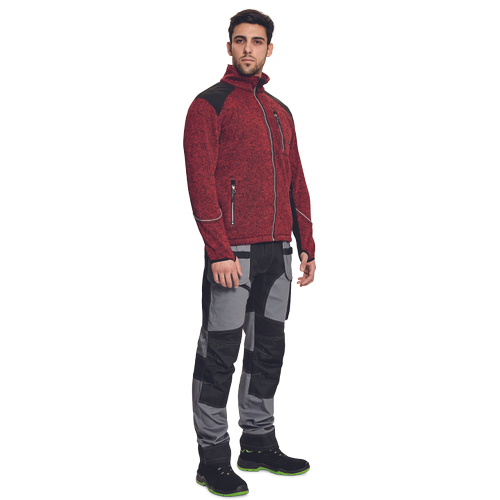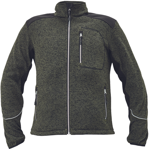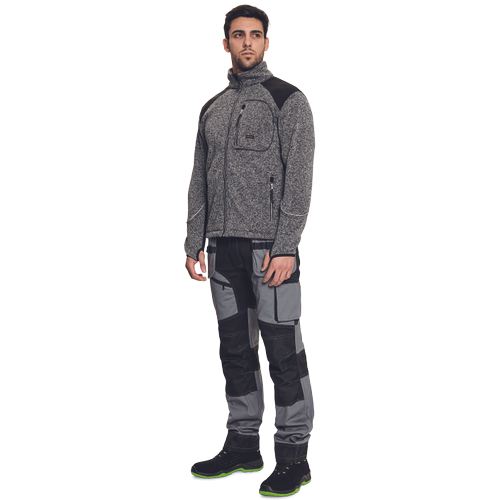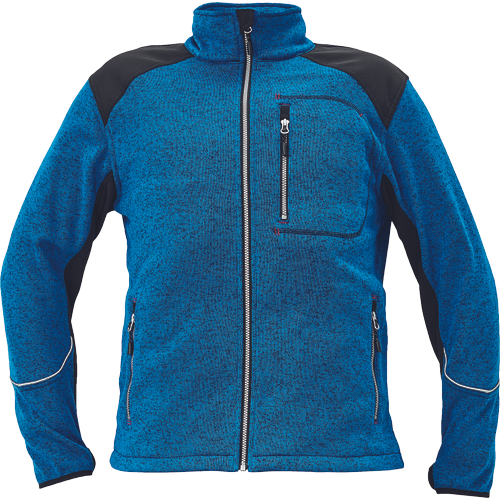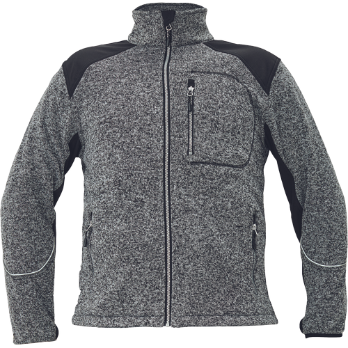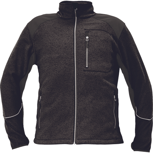 pánský svetr z melírovaného úpletu se zapínáním na zip; zesílená část v oblasti ramen a rukávů softshellovým materiálem; 2 přední kapsy na zip; 1 náprsní kapsa na zip; nastavitelná šíře spodního lemu; očko na palec na konci rukávu.Specifikace pro Svetr pracovní BOYER