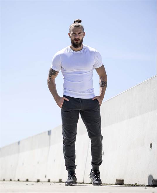 • pánské sportovní kalhoty s funkčním tvarováním nohavic v oblasti kolen