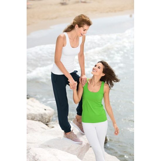 Dámské tílko přiléhavého střihu se širšími ramínky. Příjemný materiál s přídavkem elastanu pro větší stálost tvaru.