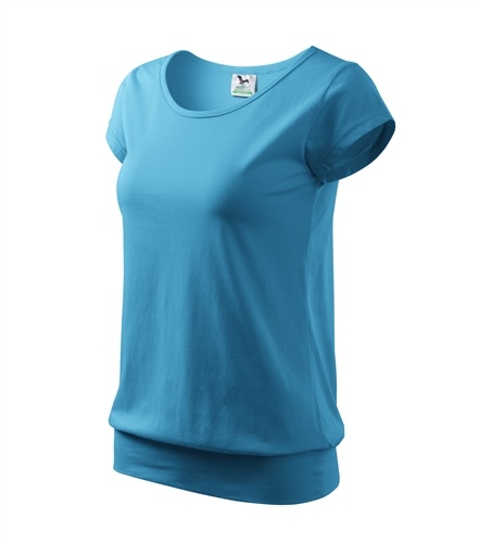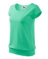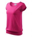 Trendové dámské triko s velmi krátkým rukávem, volnějšího střihu, v dolním kraji všité do širokého lemu.