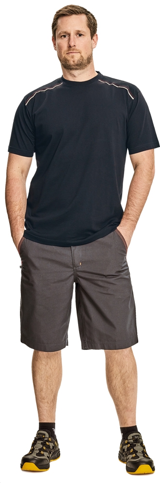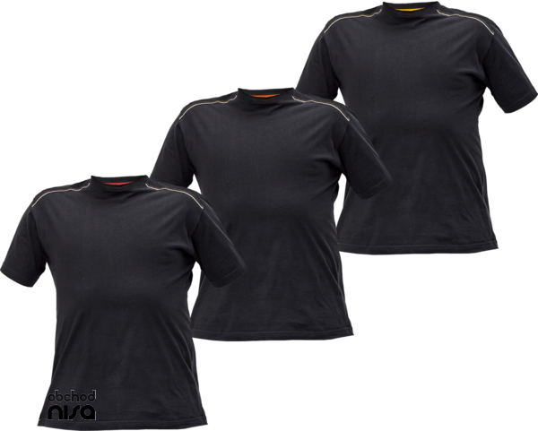 • pánské tričko z bavlněného úpletu • sedlo v kontrastní černé barvě lemované reflexní paspulkou • dekorativní prošití k hi-vis barvách
