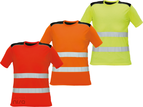 Pánské tričko z polyesterového úpletu. 2 reflexní pruhy na obvodu těla. Oblečení je vhodné pro práci ve většině běžných provozů.