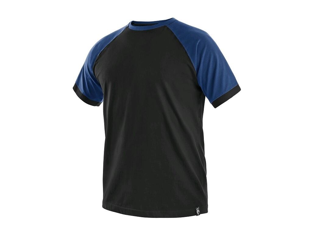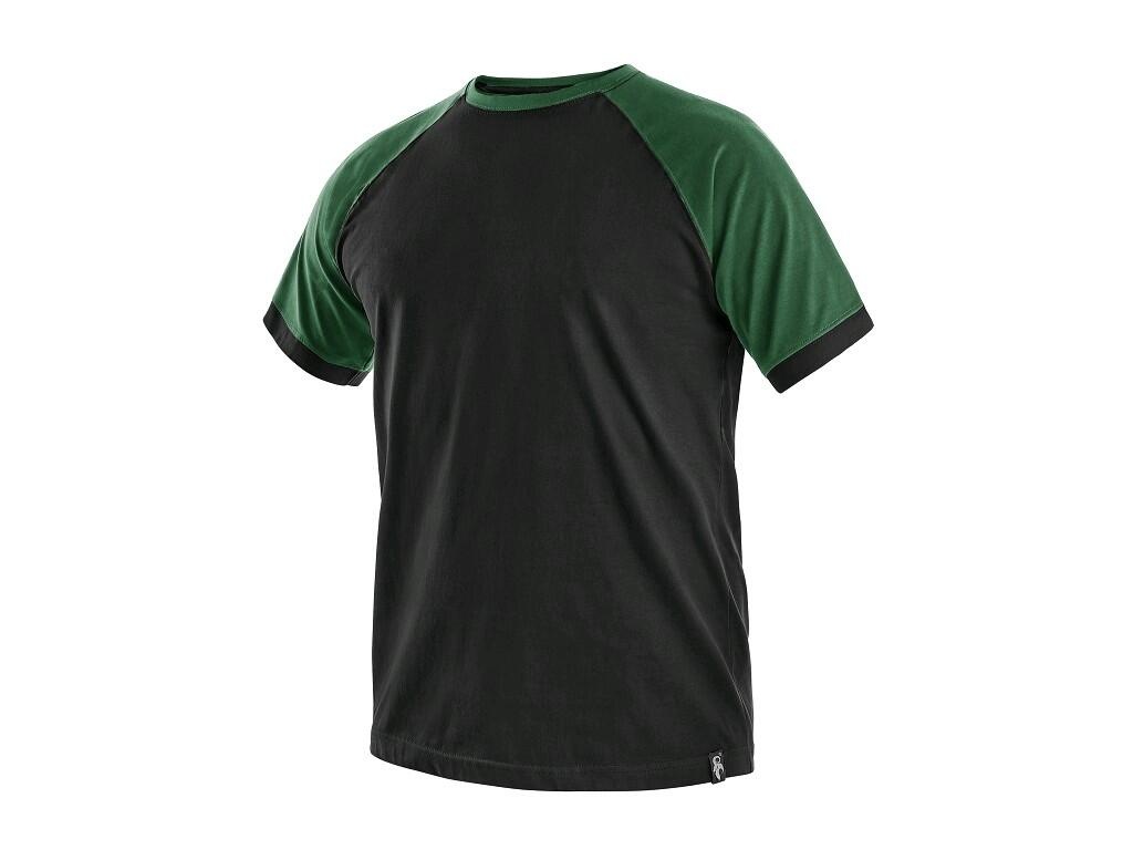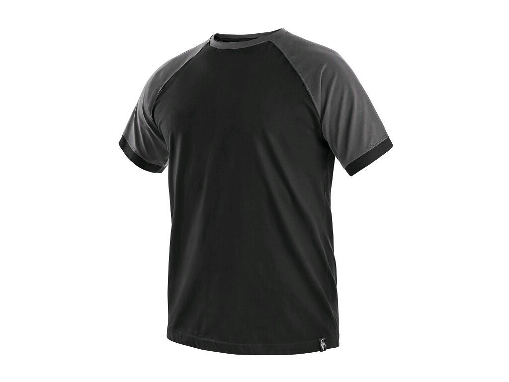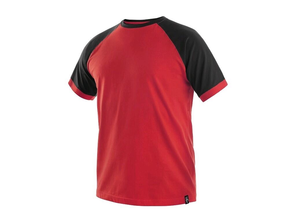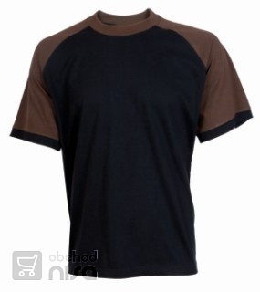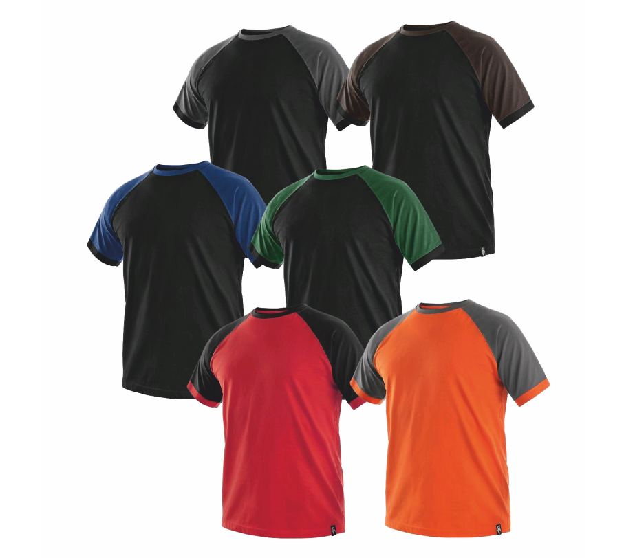 Vícebarevné třičko, krátký rukáv raglanového střihu, kulatý průkrčník s 5 % spandexu, zdvojené švy, postranní švy.