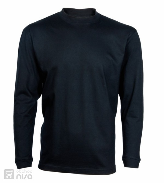Tričko s dlouhým rukávem, kulatý průkrčník, zdvojené švy, zpevňující ramenní páska, trup je po stranách beze švů.