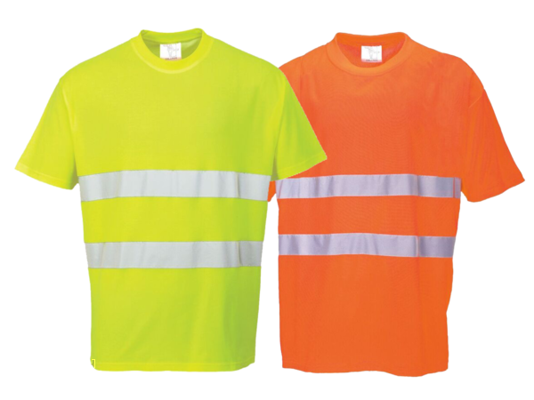 Prodyšné bavlněné triko v kombinaci s HiVisTex páskou pro lepší viditelnost.Najděte svoji velikost