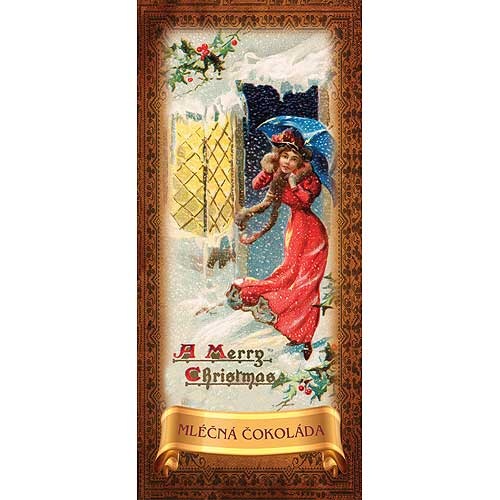 3. Vánoční čokoláda 10 g – Veselé Vánoce – paní s deštníkem