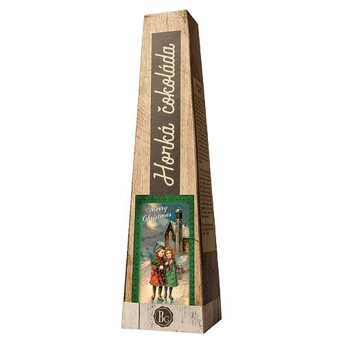 Vánoční horká mléčná čokoláda 30 g s vánočním obrázkem dětí u kostela - pro rozpuštění v horkém mléce a vytvoření lahodného čokoládového nápoje. Sladký vánoční dárek pro vaše blízké, kamarády nebo kolegy.