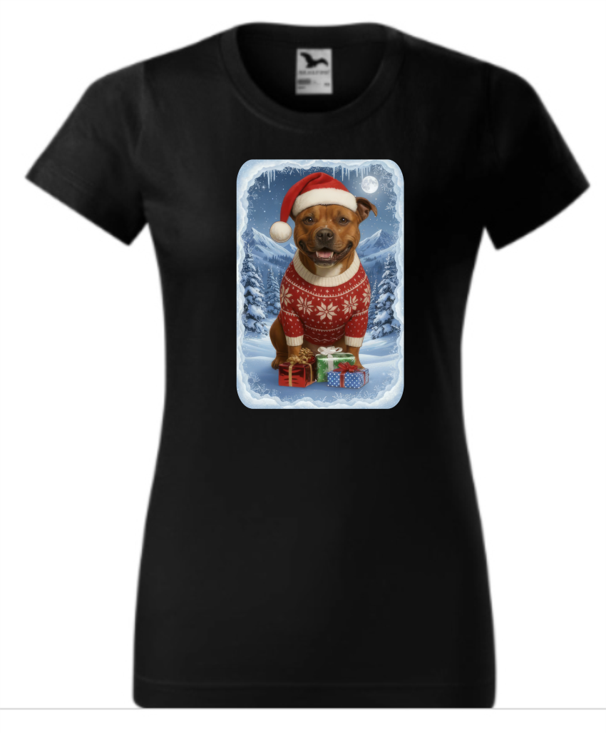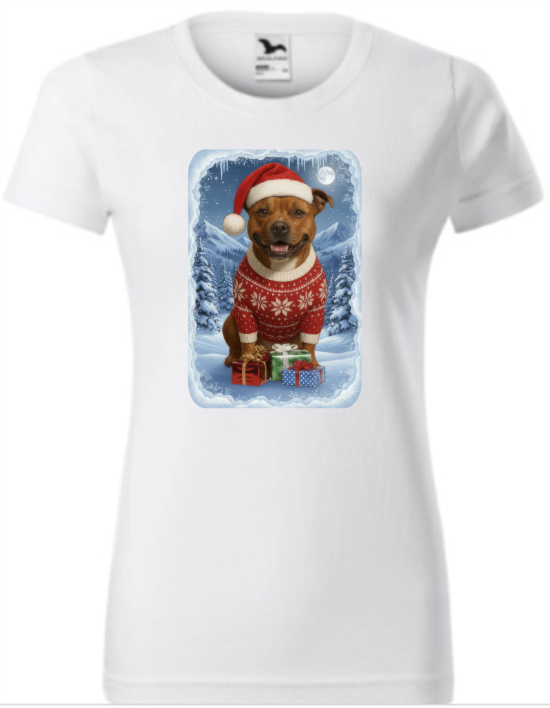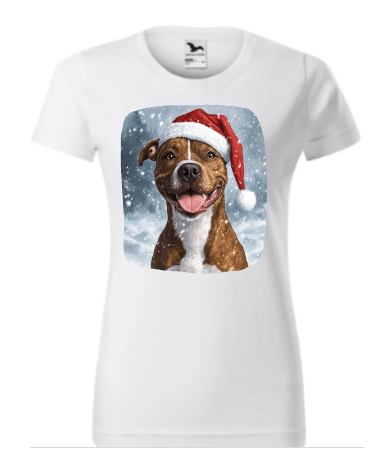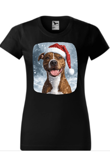Představujeme vám jedinečné tričko s vánočním motivem amerického stafordšírského teriéra! Tento silák s něžným srdcem v roztomilé vánoční čepičce rozněžní každého milovníka tohoto úžasného plemene.