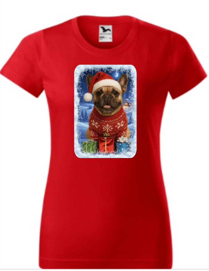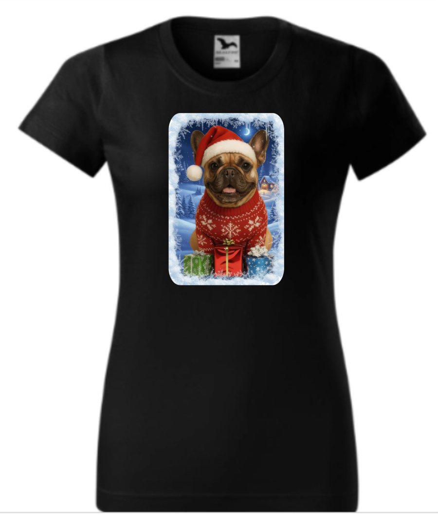 4. Vánoční tričko s Francouzským buldočkem dámské