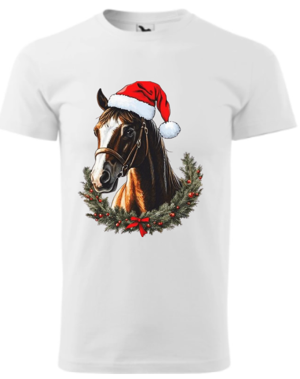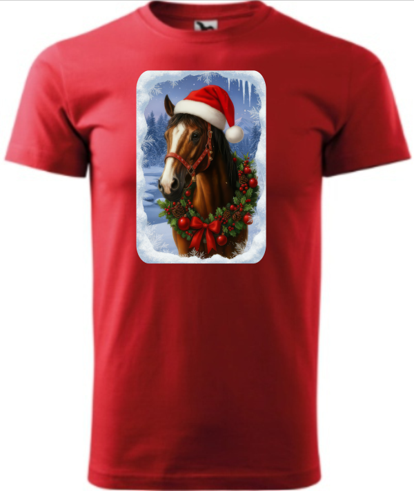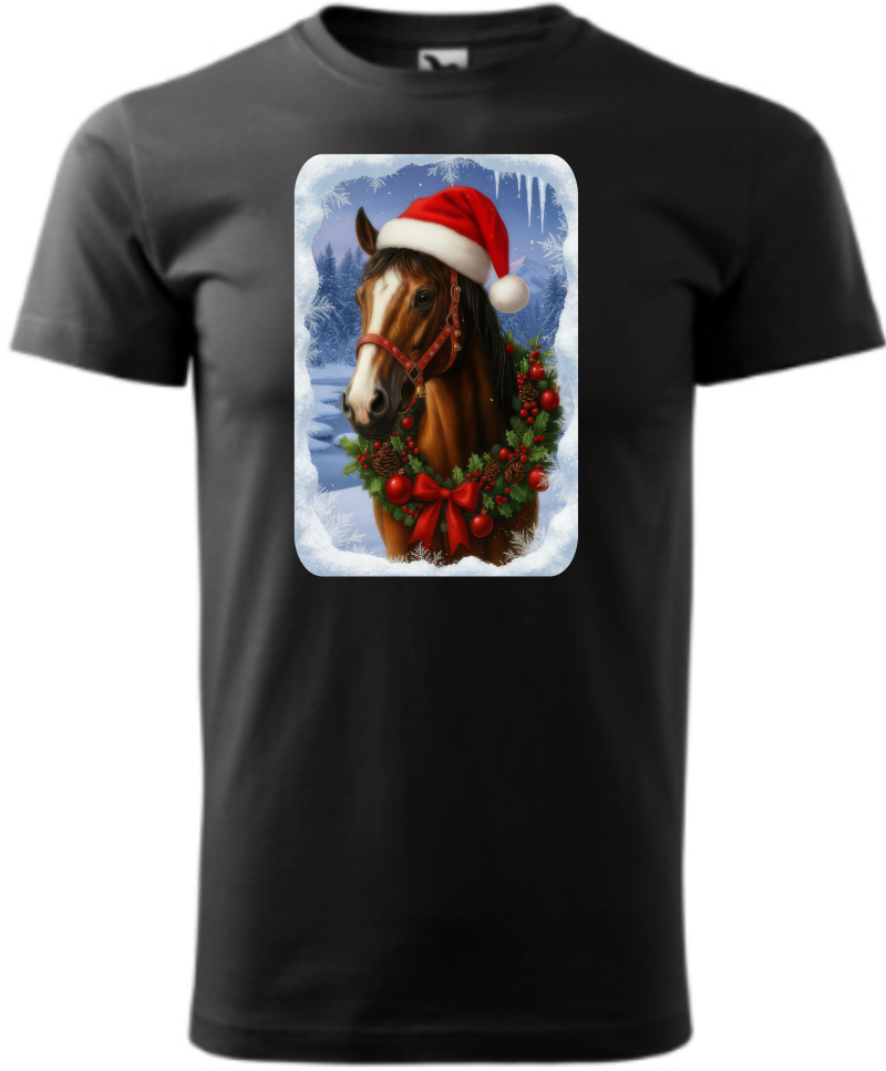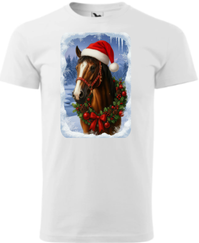 Originální tričko s vánočním motivem koně, potěší každého milovníka tohoto inteligentního zvířete! Roztomilý design zachycující koně s vánoční čepičkou přináší tu pravou sváteční atmosféru.