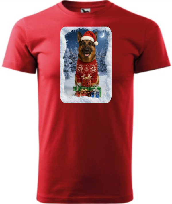 Představujeme vám kouzelné vánoční tričko, které si zamiluje každý milovník Německých ovčáků! Na přední straně trička najdete inteligentního siláka v podobě Německého ovčáka, ozdobeného vánoční čepičkou, který vykouzlí úsměv na tváři všem kolem vás.