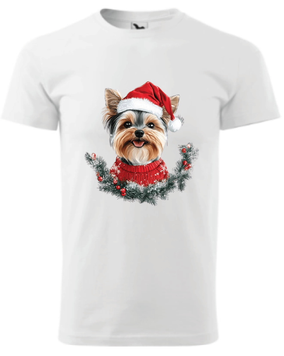 Originální tričko s vánočním motivem Yorkshirského teiréra, potěší každého milovníka tohoto energetického plemene! Roztomilý design zachycující Yorkšírka s vánoční čepičkou přináší tu pravou sváteční atmosféru.