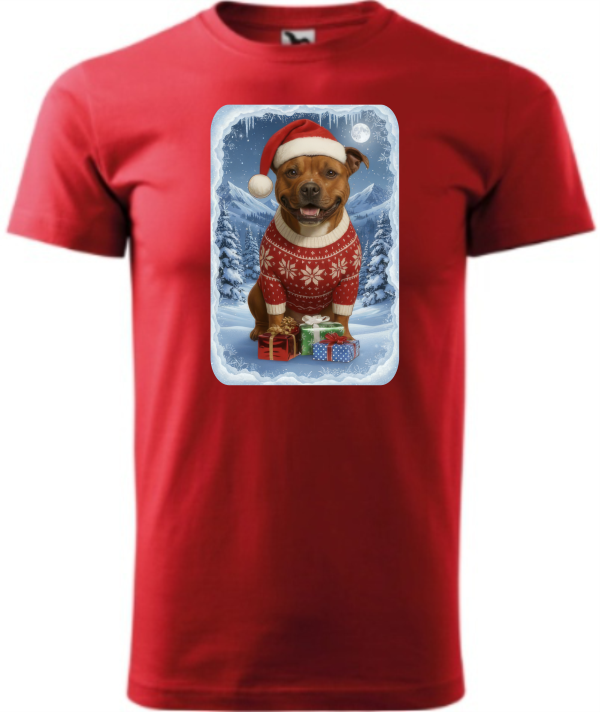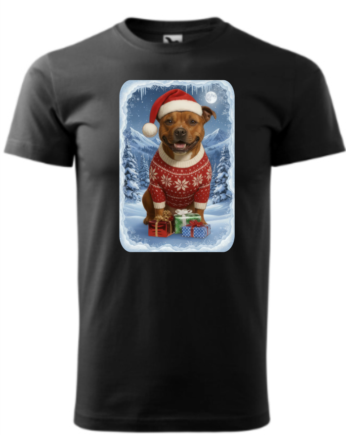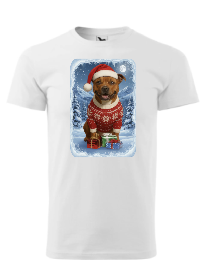 Představujeme vám jedinečné tričko s vánočním motivem amerického stafordšírského teriéra! Tento silák s něžným srdcem v roztomilé vánoční čepičce rozněžní každého milovníka tohoto úžasného plemene.