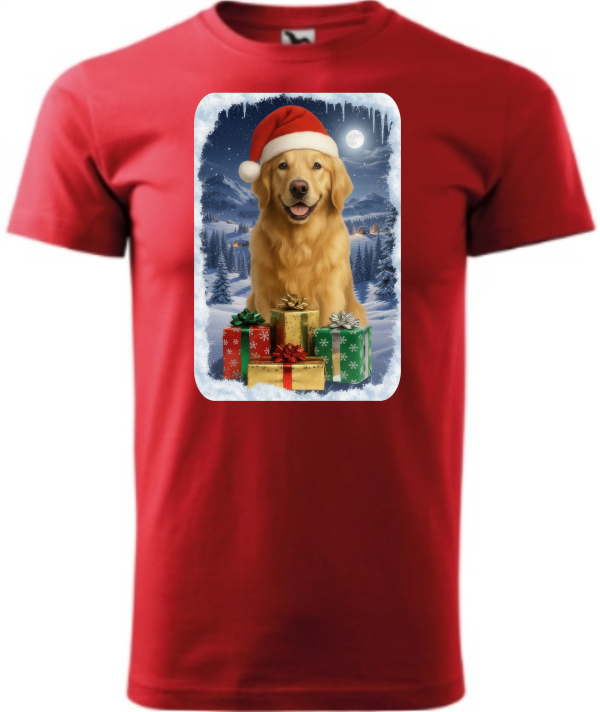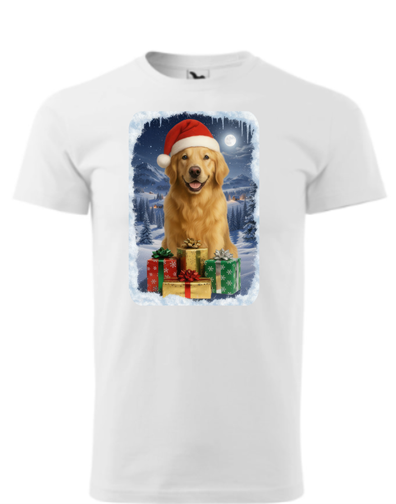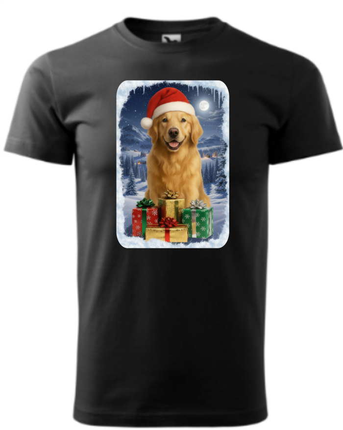 Originální tričko s vánočním motivem Zlatého retrívra, potěší každého milovníka tohoto přátelského plemene! Roztomilý design zachycující retrívra s vánoční čepičkou přináší tu pravou sváteční atmosféru.