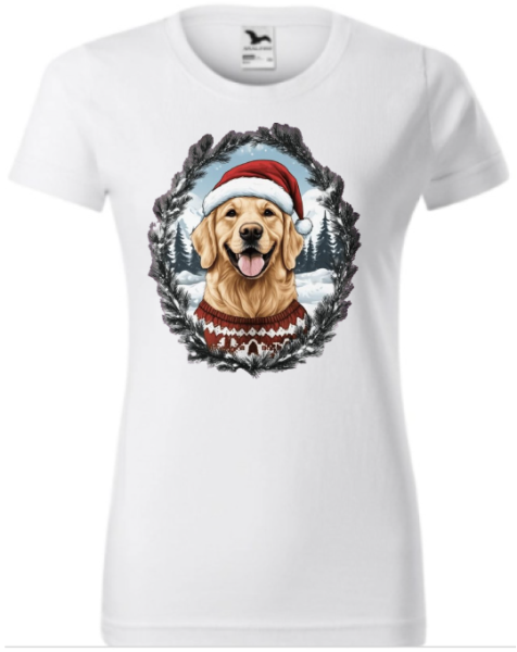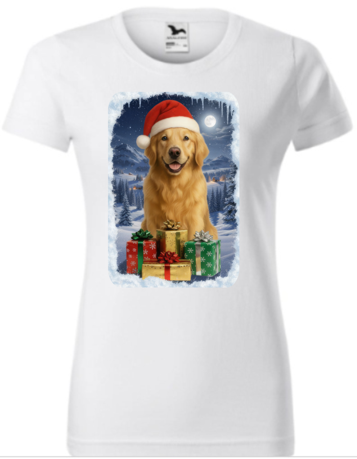 Základní informace pro Vánoční tričko se Zlatým retrívrem dámské