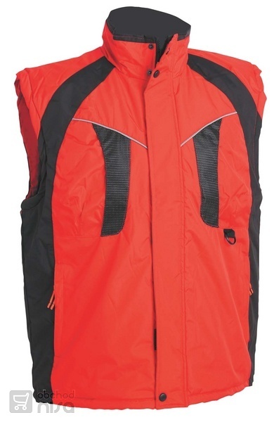 Zateplená nepromokavá vesta, 100% polyester povrstvený PVC, zateplení a podšívka polyester, vnitřní kapsa na mobil.