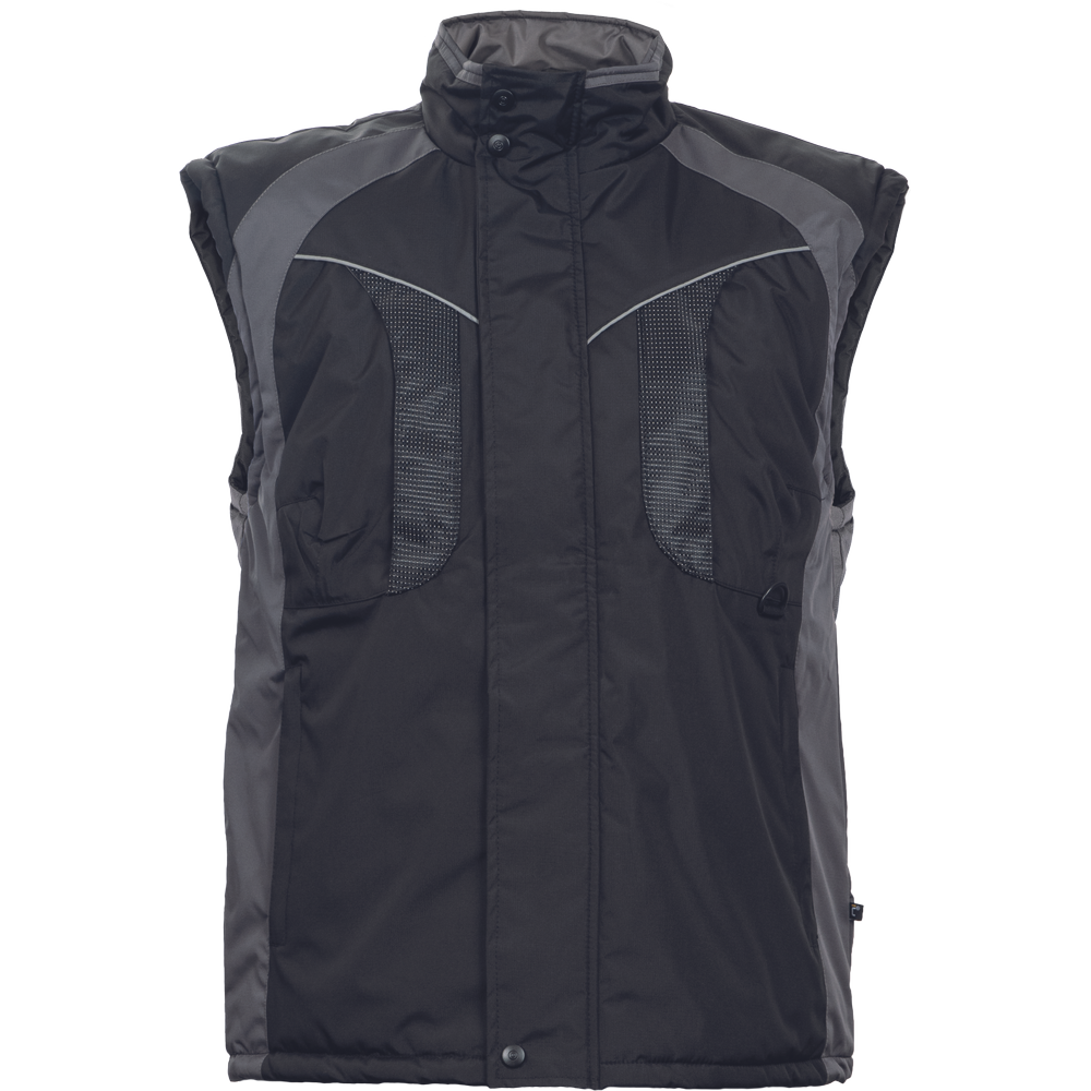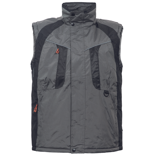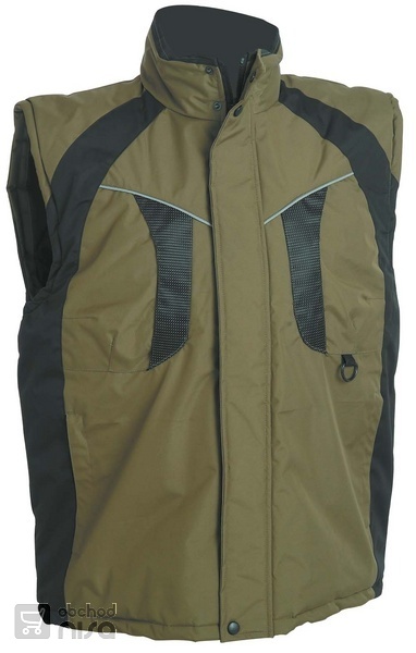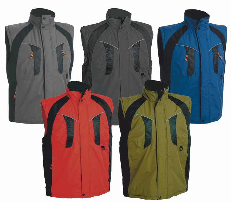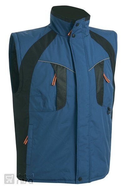 Zateplená nepromokavá vesta, 100% polyester povrstvený PVC, zateplení a podšívka polyester, vnitřní kapsa na mobil.Najděte svoji velikost