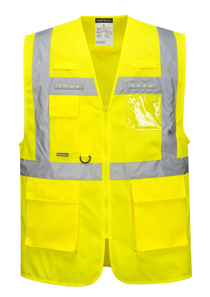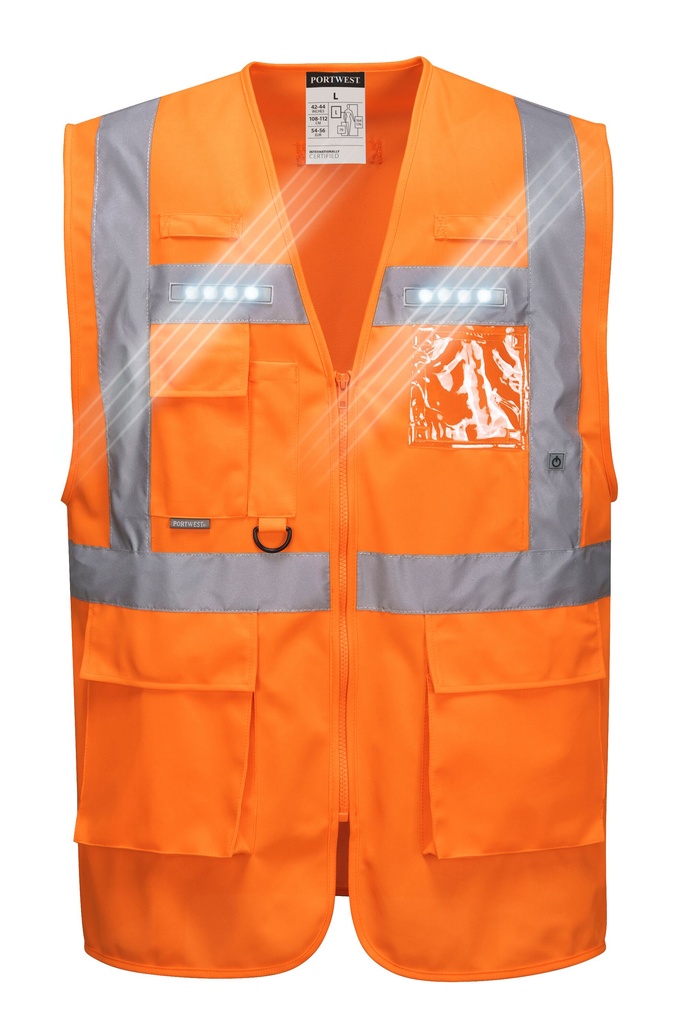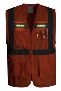 Tato vesta obsahuje inovativní integrované LED osvětlení pro maximální viditelnost. Vícenásobné kapsy poskytují vynikající osobní bezpečnost. Komfortní kapsa pro bezpečnostní průkazy a karty.
