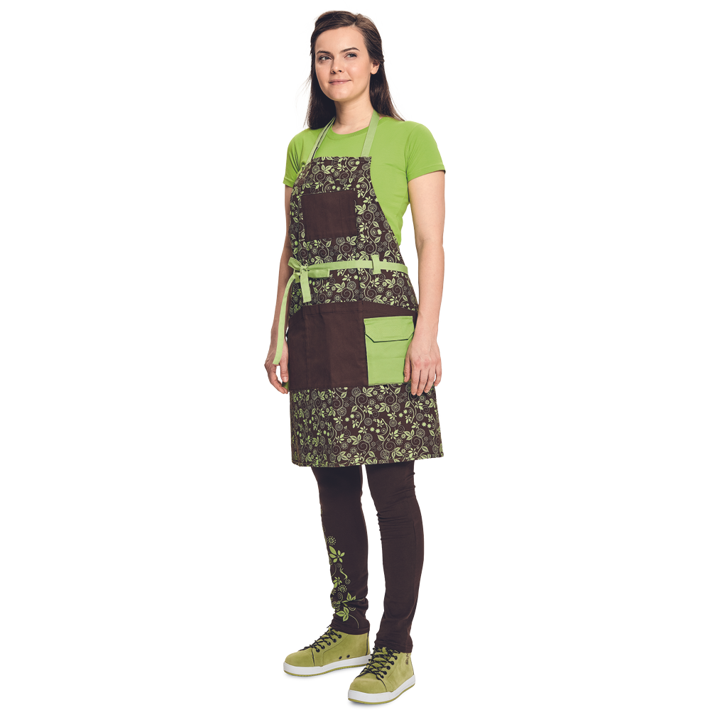 Dámská zahradní stylová zástěra, s množstvím různých kapes včetně kapsy na telefon s patkou.