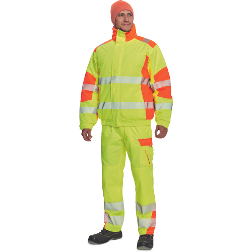 Pánská zateplená hi-vis bunda pilot střihu, atraktivní 2-barevné provedení, integrovaná kapuce v límci, 2 postranní kapsy na zip, vnitřní kapsa na mobil.