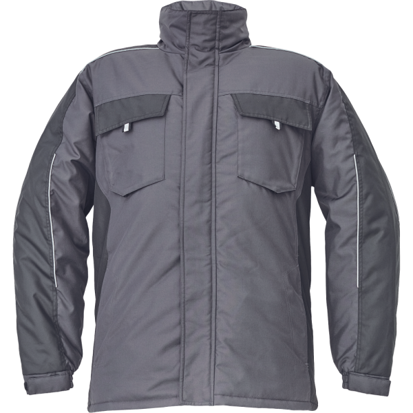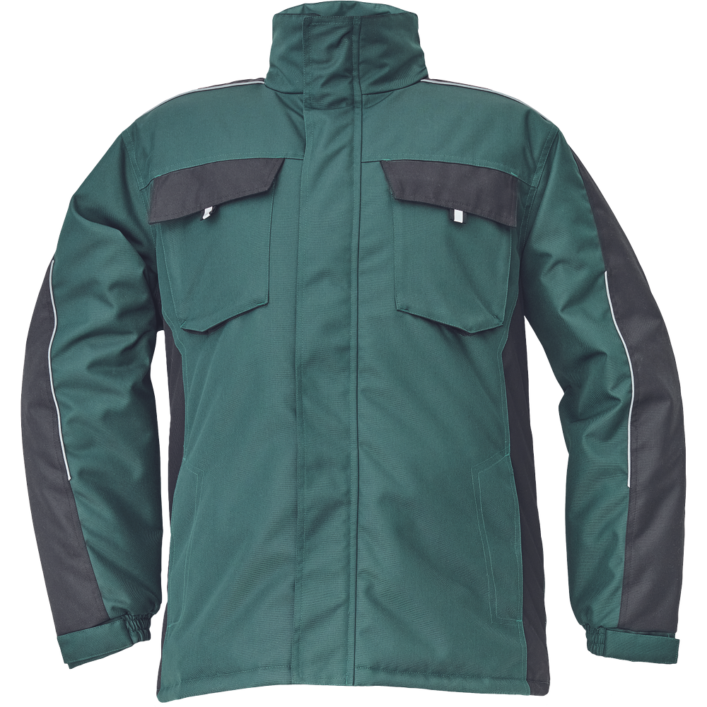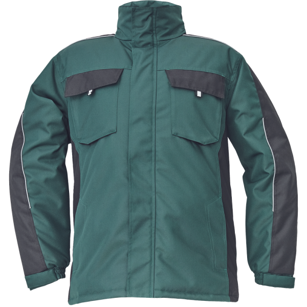 Pánská zimní bunda; zapínání na zip kryté légou na suchý zip; 2 boční kapsy, 2 náprsní kapsy na suchý zip.Najděte svoji velikost