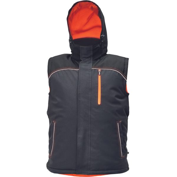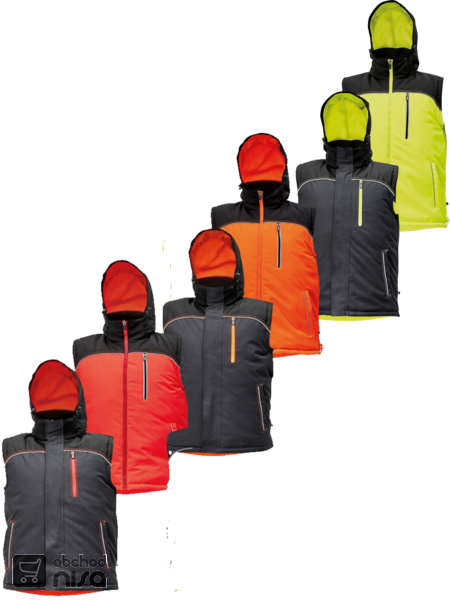 Pánská oboustranná zateplená vesta s odnímaelnou kapucí vhodnou pro obě verze nošení vesty. Oblečení je vhodné pro práci ve většině běžných provozů.