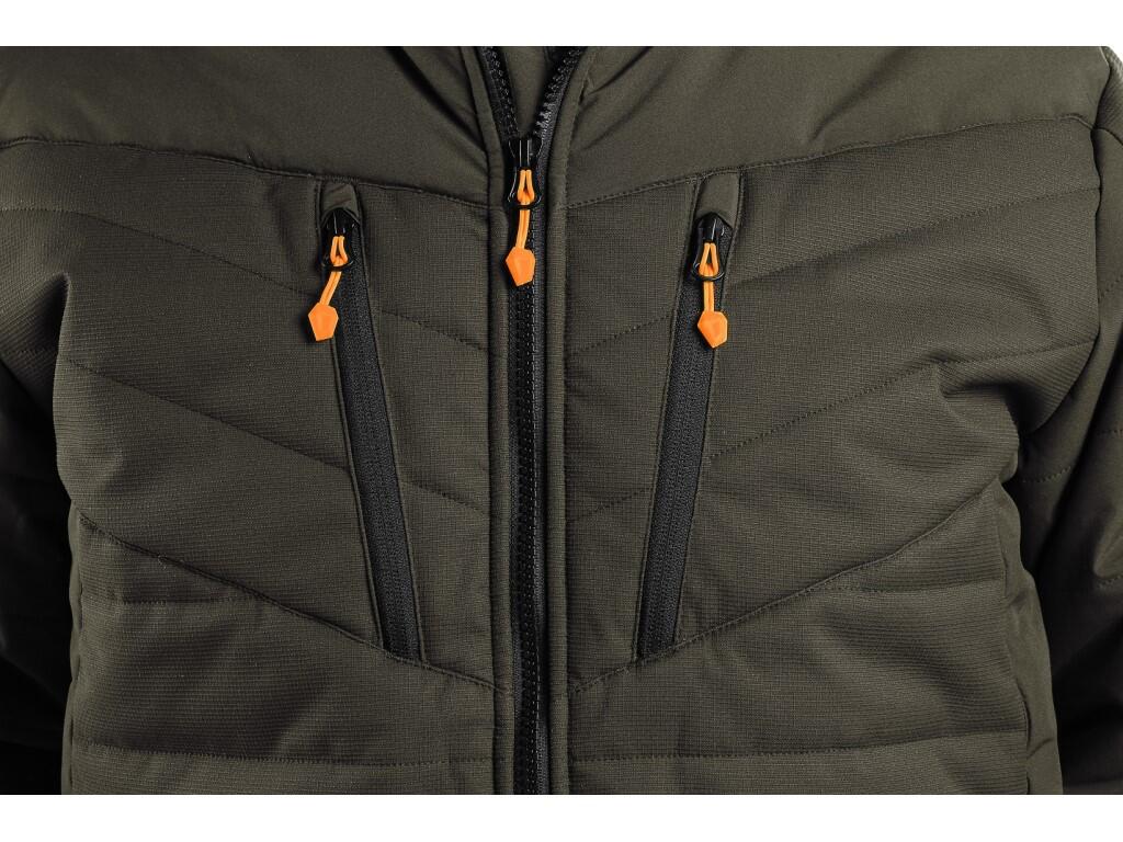 - je vybavena naprsními kapsami na zip, bočními kapsami na zip, vnitřní náprsní kapsou, jemnou elastickou gumičkou v zápěstí a spodním lemu