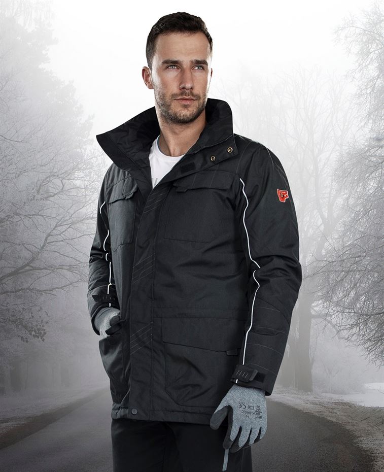 Pracovní zimní parka s charakteristickýmí designovými prvky řady 4TECH z pevného a odolného materiálu.