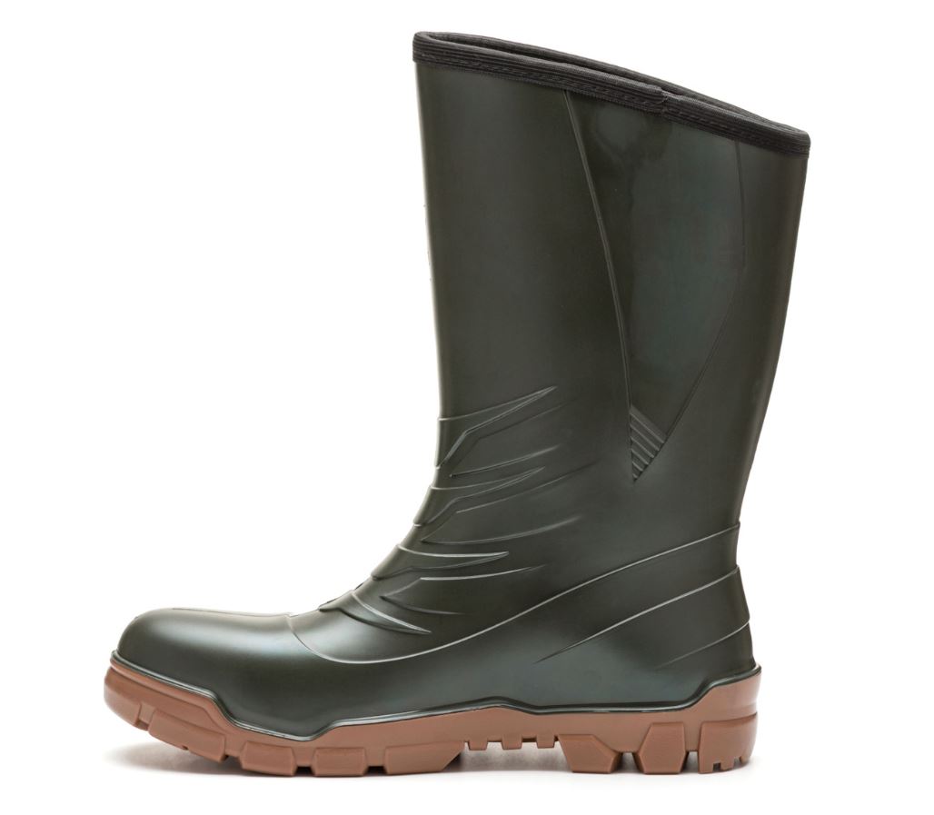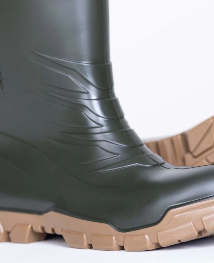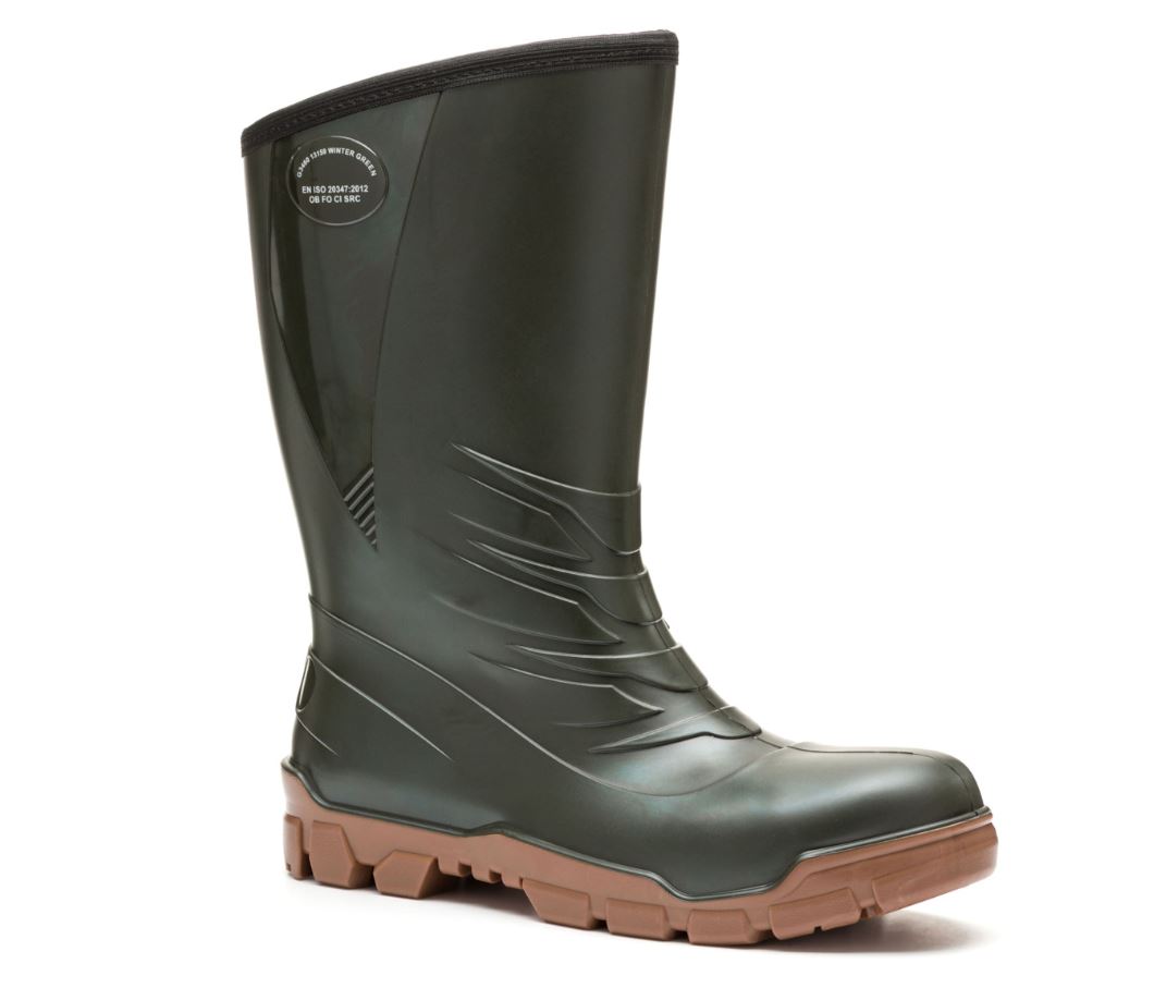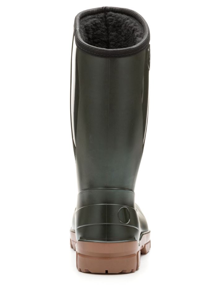 Odolné pracovní holínky vyrobené z kvalitního PVC, které zajišťuje spolehlivou voděodolnost a odolnost proti opotřebení. Protiskluzová podešev poskytuje bezpečný krok i na mokrém a kluzkém povrchu. Vnitřní kožešinová podšívka udržuje nohy v teple a pohodlí i při práci v chladném počasí.